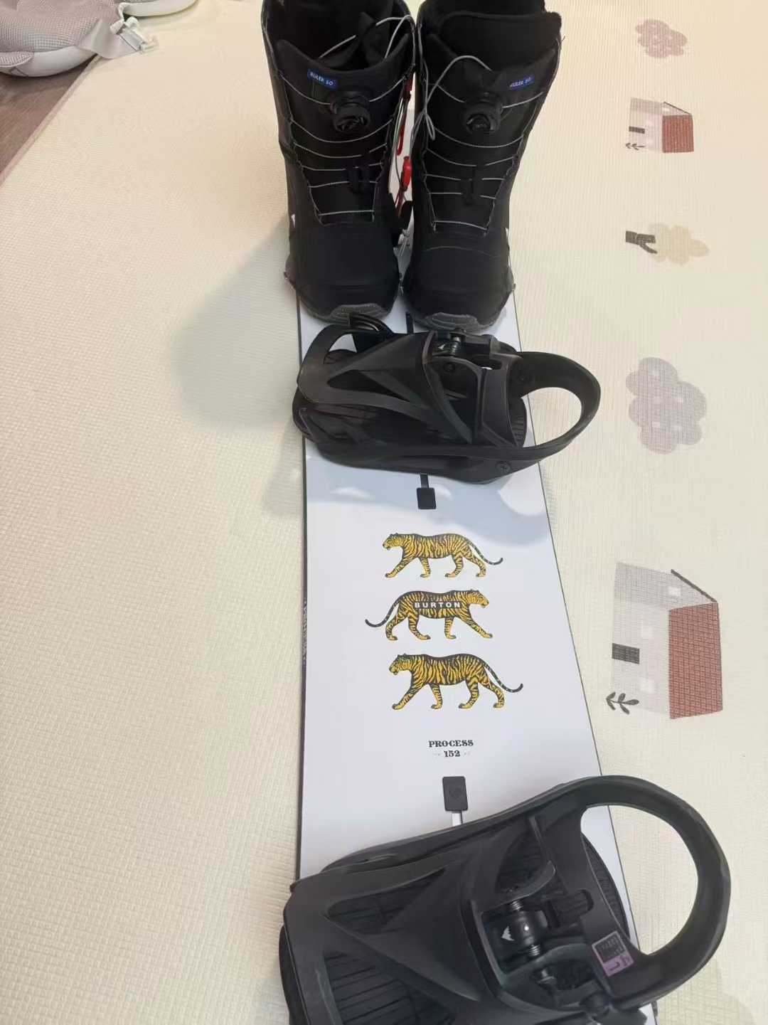 【出售】出🏂单板滑雪装备(US:9) Burton Process老虎板152cm,很帅很霸气,适合新手, 25年3月入手主要滑了这个雪季,成色优秀,699买入300🔪出 送打蜡一次 Burton Limelight Step On bindings 原价389.99 Burton Ruler Step On boots原价459.99 固定器和雪鞋只捆绑出300🔪全套买580🔪 可线下看雪板雪鞋固定器(UA旁)电话8259636666