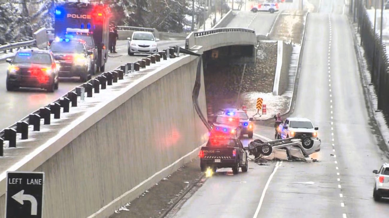 卡尔加里警方称,周一在西北克劳柴尔德小径发生的一起翻车事故中,两人受重伤。 翻车事故发生在早上6点30分刚过,地点位于西北16大道附近。 警方称,这辆车从立交桥上坠落到下面的道路上。 急救人员称,两名成年人被送往医院——其中一人生命垂危,另一人生命垂危。 事故导致克劳柴尔德小径南北双向车道封闭。