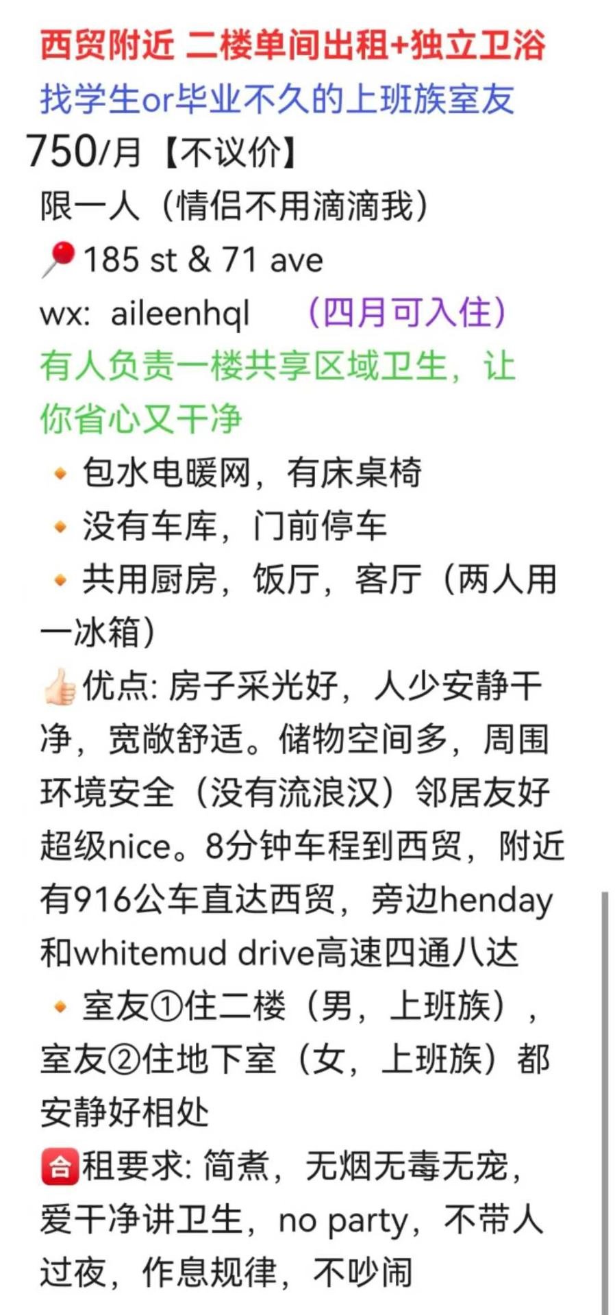 【出租】西贸附近,二楼单间(任选一间)➕独立卫浴,有家具,750/月不议价,限一人住。包水电暖网,有人负责公共区域卫生。4月可入住。wx: aileenhql | 人在阿尔伯塔