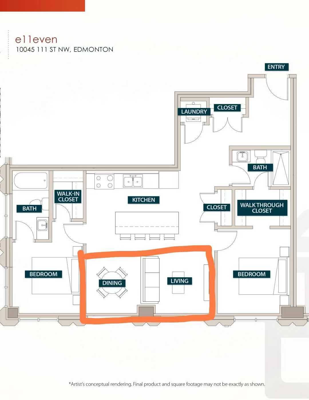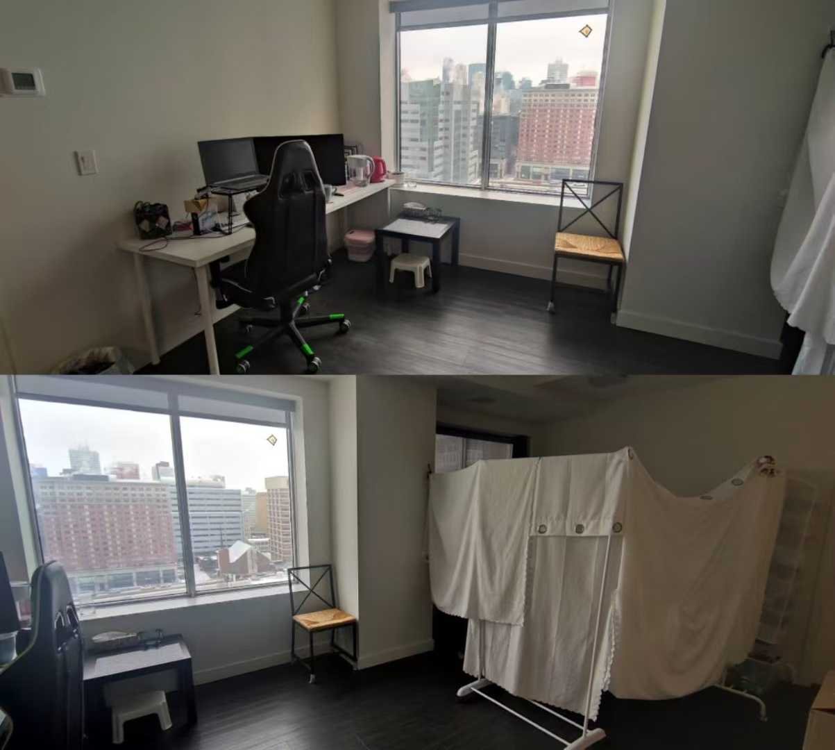 有空调和独立洗烘套装的超大客厅转租!位于Downtown的E11even的2b2b客厅转租,招女生,2026年二月中下旬/三月起可入住,具体入住时间可协商。房租622刀/月,送押金,包水暖,电网与两个室友平摊。房间已有简易隔断,家具与厨具和其他各种生活用品一起低价出(半买半送)。2026年11月底lease到期,到期可续,优先长租。 设施:好打理的全木地板,夏天可开空调。和小卧室友共用一个卫生间。套间内有免费in-suite洗衣机和烘干机,现代化厨房设施,有烤箱、微波炉、洗碗机等基础厨房电器。公寓带有免费健身房、活动室和楼顶patio。 地段:位于Downtown外缘居民区中,安静且治安较好。交通方便,步行5分钟到地铁站,坐地铁去UA只需一站5分钟。楼下公交线路多,有直通West Edmonton Mall,City Centre和学校的公交。公寓附近有Coco奶茶、云尚米线和Save on Foods超市,也有很多其他不同口味的餐馆。 室友:大卧和小卧室友都是UA的女学生,安静,好相处。希望新室友待人友善,轮流打扫卫生,保持公共区域整洁,作息规律,不在深夜大声喧哗。 转租原因:个人因工作需要搬家。 需要视频/线下看房请联系,联系方式见图。