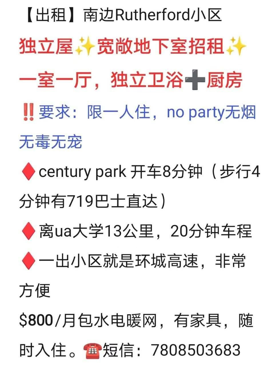 【出租】南边Rutherford,宽敞地下室一室一厅 | 人在阿尔伯塔