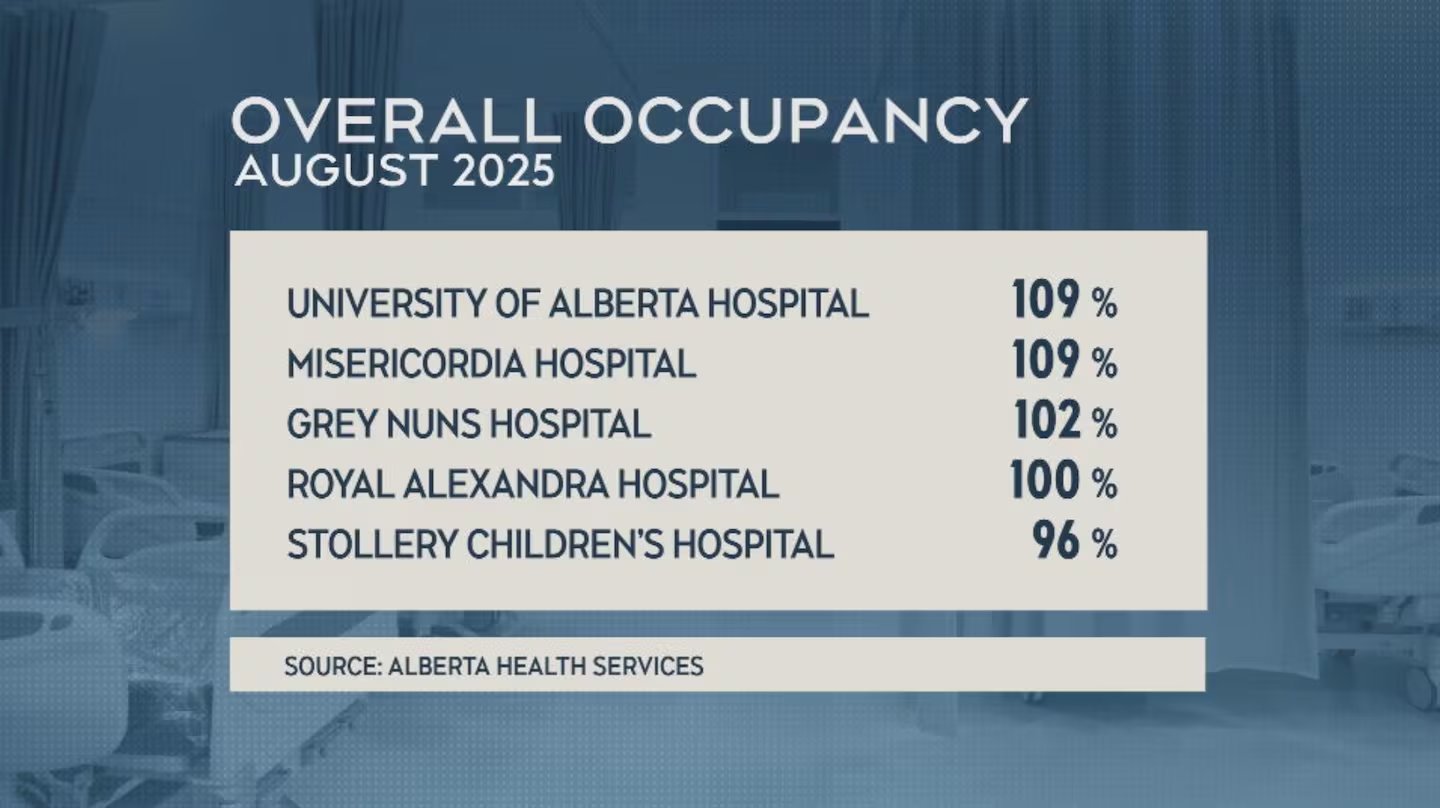 最新数据显示,埃德蒙顿多家主要医院在今年8月已接近甚至超过100%床位使用率,医生指出,**“替代护理等级患者”(ALC)**大量滞留在医院,是急诊排队时间过长的重要原因之一。 根据阿省卫生服务局(AHS)数据: Grey Nuns 医院:18% 病床为 ALC 患者 皇家亚历山大医院:21% 阿尔伯塔大学医院(U of A):22% Misericordia 医院:高达 37% 这意味着,在埃德蒙顿四大医院共 2325 张病床中,有 539 张被 ALC 患者占用。 什么是 ALC 患者? 加拿大健康信息研究所(CIHI)将 ALC 患者定义为:不再需要医院级别治疗,但暂时无法出院的人,通常是等待长期护理、辅助居住或社区支持服务的患者。 医院几乎“爆满” 8月整体床位使用率显示: U of A 医院:109% Misericordia 医院:109% Grey Nuns:102% 皇家亚历山大医院:100% Stollery 儿童医院:96% 医生指出,这种情况在流感季到来前就已出现,风险不容忽视。 医生:问题不在医院,而在“出院之后” 急诊医生表示,社区护理体系周末和夜间服务不足,导致病人无法及时出院,周末积压尤为严重。 他们呼吁: 扩大 24/7 居家护理 加快患者从医院转入社区或长期护理机构 数据显示,90%以上 ALC 患者年龄在 55 岁以上,中位年龄高达 80 岁。 成本差距巨大 研究显示: ALC 患者在医院每天成本:$730–$1,200 长期护理机构每天成本:约 $250 专家认为,减少 ALC 患者数量,不仅能节省数十亿医疗开支,也能缓解急诊拥堵。 阿省政府表示,已成立新的“阿省辅助生活机构”,并称目前正“高度聚焦”该问题。 埃德蒙顿未来几年将新增 383 个护理床位 未来十年将投资数十亿扩展长期护理和居家护理服务 不过,多位业内人士指出,人口增长和老龄化速度,已明显快于护理资源扩张速度。