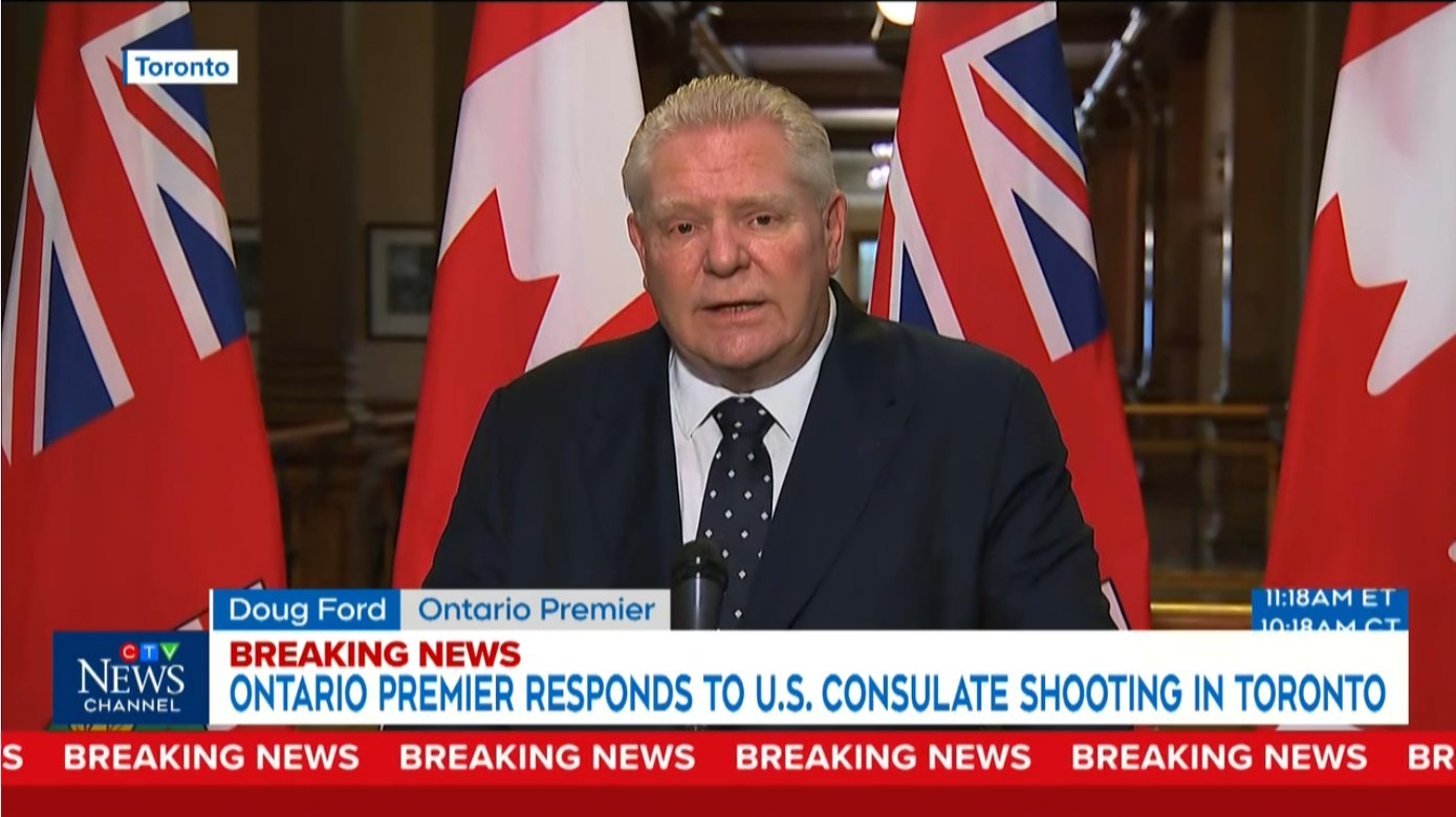多伦多美国驻领馆外周二凌晨发生枪击事件,引发安省政界和警方高度关注。 安省省长道格·福特表示,这起事件“绝对不可接受”,称涉案人员一旦落网,将“面对法律的全部制裁”。 据警方通报,两名嫌疑人 reportedly 从一辆SUV下车后,在美国领馆外部开枪。 目前暂无人员受伤,但警方已将此案按国家安全事件处理,并表示暂时不能排除恐怖主义因素。 这起枪击案发生前,多伦多地区多座犹太会堂近期也接连遭遇枪击。 警方目前尚未确认这些案件之间存在关联。 警方已公布一辆嫌疑车辆的监控画面,并呼吁公众提供线索。 RCMP表示,CSIS和国家安全执法团队正在介入调查,并持续密切追踪此案。 多伦多市长邹至蕙也表示,近期这类高关注度枪击事件“不能被容忍”,并称全力支持警方将责任人绳之以法。